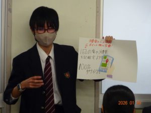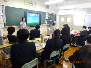 1月20日(火)3年生が静岡県地球温暖化防止活動推進センターから講師をお招きして特別授業を受けました。