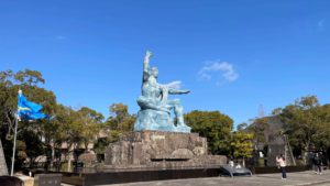 長崎平和公園や原爆資料館を見学。グラバー園などを見学して、宿泊先のホテルに到着。