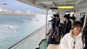 長崎市内で班別研修。多くの班がフェリーで軍艦島を見学したり、路面電車を利用し、大浦天主堂や出島など、観光名所を見学したり、中華街で昼食を食べたり、長崎の魅力を堪能しました。