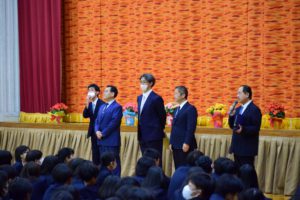 就任式では、本年度新たに着任された先生方の紹介が行われました。先生方からのご挨拶に、生徒たちは真剣な表情で耳を傾けながらも、新しい出会いに胸を弾ませている様子が見られました。これからの日々をともに過ごす仲間として、互いに支え合いながら歩んでいきます。