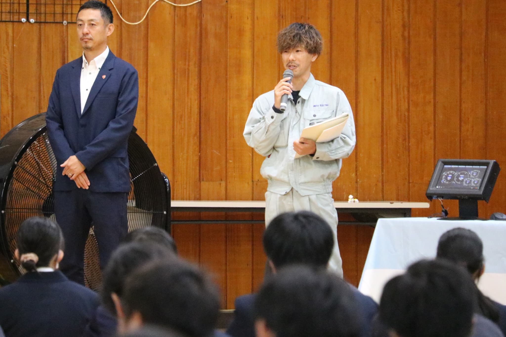 令和7年11月5日(水)、本校普通科1年生を対象に、株式会社エスパルス様および明陽電機株式会社様をお招きし、キャリア教育授業を実施しました。