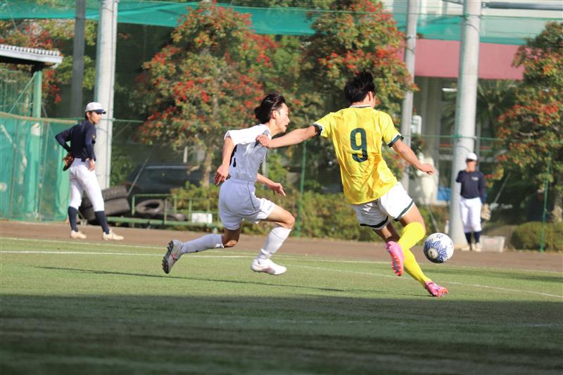 12月23日(火)に行われた新人戦において、本校サッカー部は、城南静岡高校と対戦し、3-0で勝利しました。試合は立ち上がりから積極的に攻撃を仕掛け、前半10分に先制点を奪取。さらに前半30分には追加点を決め、主導権を握ったまま前半を折り返しました。後半に入っても集中力を切らすことなく試合を進め、53分にはダメ押しとなる3点目を記録。堅い守備で相手の攻撃を封じ、最後まで無失点で試合を終えることができました。この勝利により、サッカー部は中部大会を勝ち上がり、🎉県大会出場🎉を決定しました。