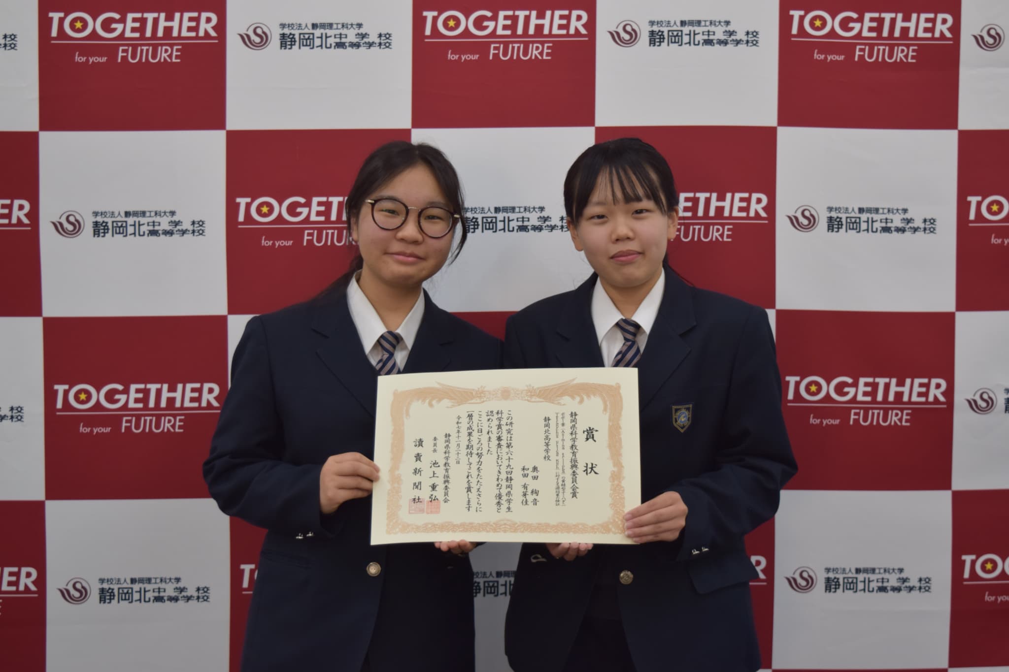 | 第69回 静岡県学生科学賞 | 静岡県科学教育振興委員会賞 | 奥田 絢音(2年)/和田有芽佳(2年) |