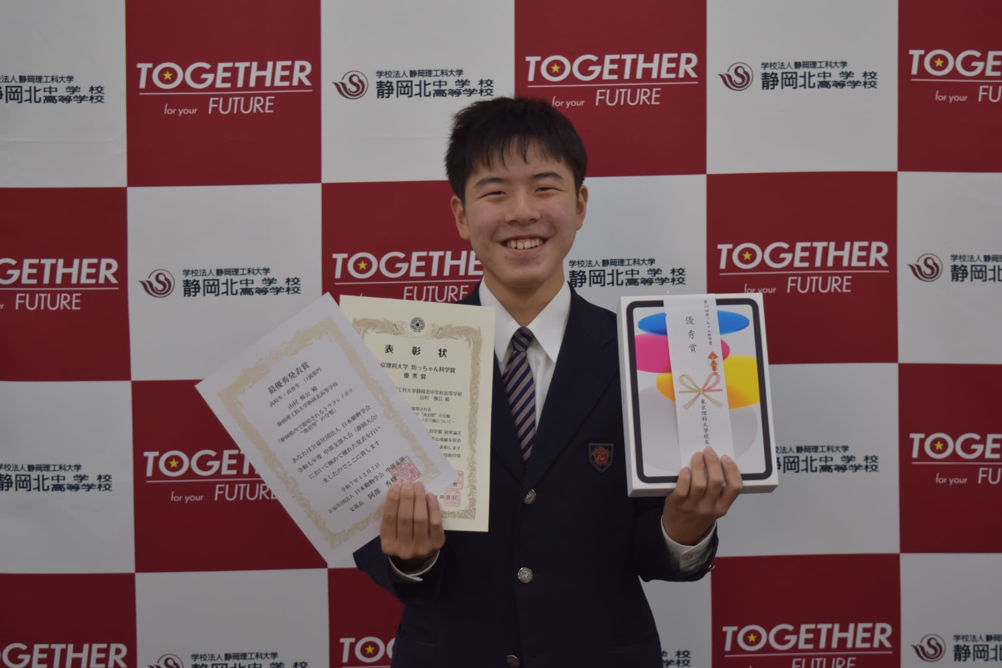 | 東京理科大学坊ちゃん科学賞 | 優秀賞 | 山村 悌公(3年) |