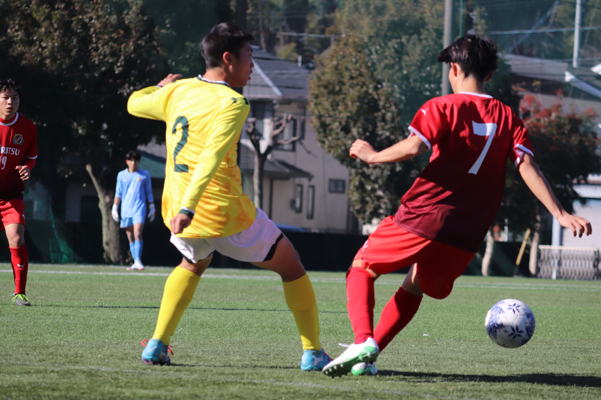 前半開始直後に失点を許す苦しい立ち上がりとなりましたが、選手たちは慌てることなく陣形を整え、守備の役割を再確認しながら徐々に主導権を取り戻しました。後半は交代選手を含め、運動量と強度を高いレベルで維持。セットプレーや背後への積極的なランニングで相手を押し込み、サイドでの連係とセカンドボールの回収が機能し、3度にわたり同点に追いつく粘り強い展開を見せました。勝ち越しには至らず試合はPK戦へ突入しましたが、ここでGK望月(2年)が2本のPKをセーブ。全員が準備し、声を掛け合いながら戦い抜いた結果、チーム一丸となって勝利をつかみ取りました。序盤のリスク管理など課題は残るものの、試合中に修正する力、球際での粘り強さ、切り替えの速さは、大きな収穫となりました。