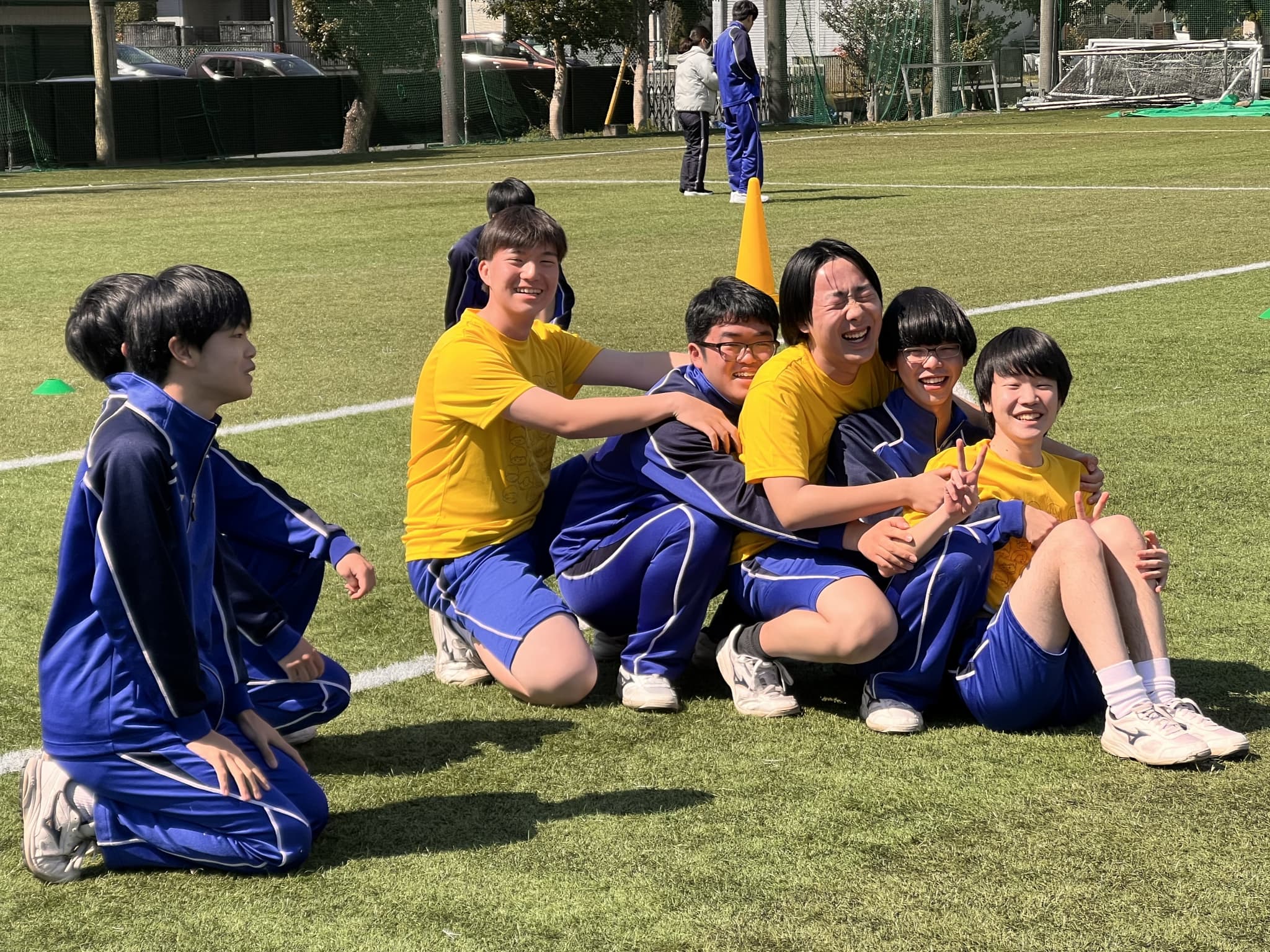 また、学級担任もそれぞれのクラスのチームに参加し、生徒とともに本気のプレーで試合を盛り上げました。生徒と教員が一体となって楽しむ、和やかな雰囲気の一日となりました。今回の球技大会を通して、学年の仲間との交流を深めるとともに、クラスの絆を感じる一日となりました。なお、翌日は高校1年生による球技大会が実施される予定です。