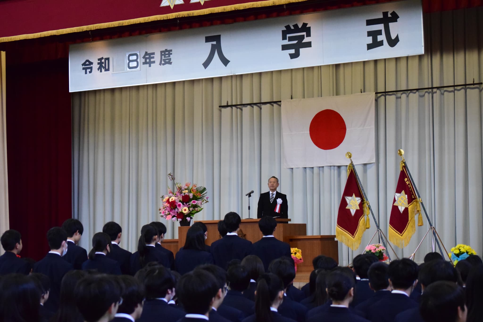 令和8年4月8日(水)本校体育館にて、中高合同入学式を挙行し、新たな仲間を迎えました。北中・北高での学校生活は、ここから始まる「1000日ストーリー」です。これからの一日一日を大切に積み重ね、かけがえのない3年間を自らの手で創り上げていってほしいと願っています。日々の生活の中で確かな習慣を築き、その積み重ねを力に変えながら、自分らしい未来を主体的に切り拓いていくことを期待しています。