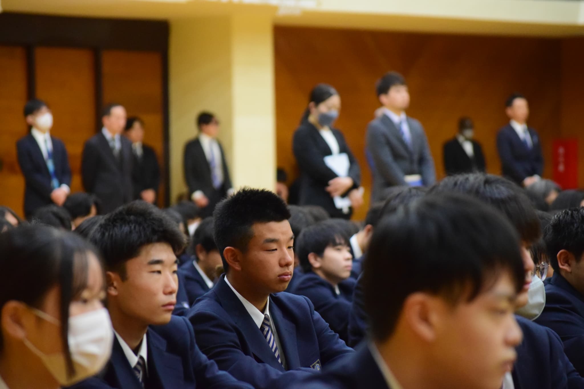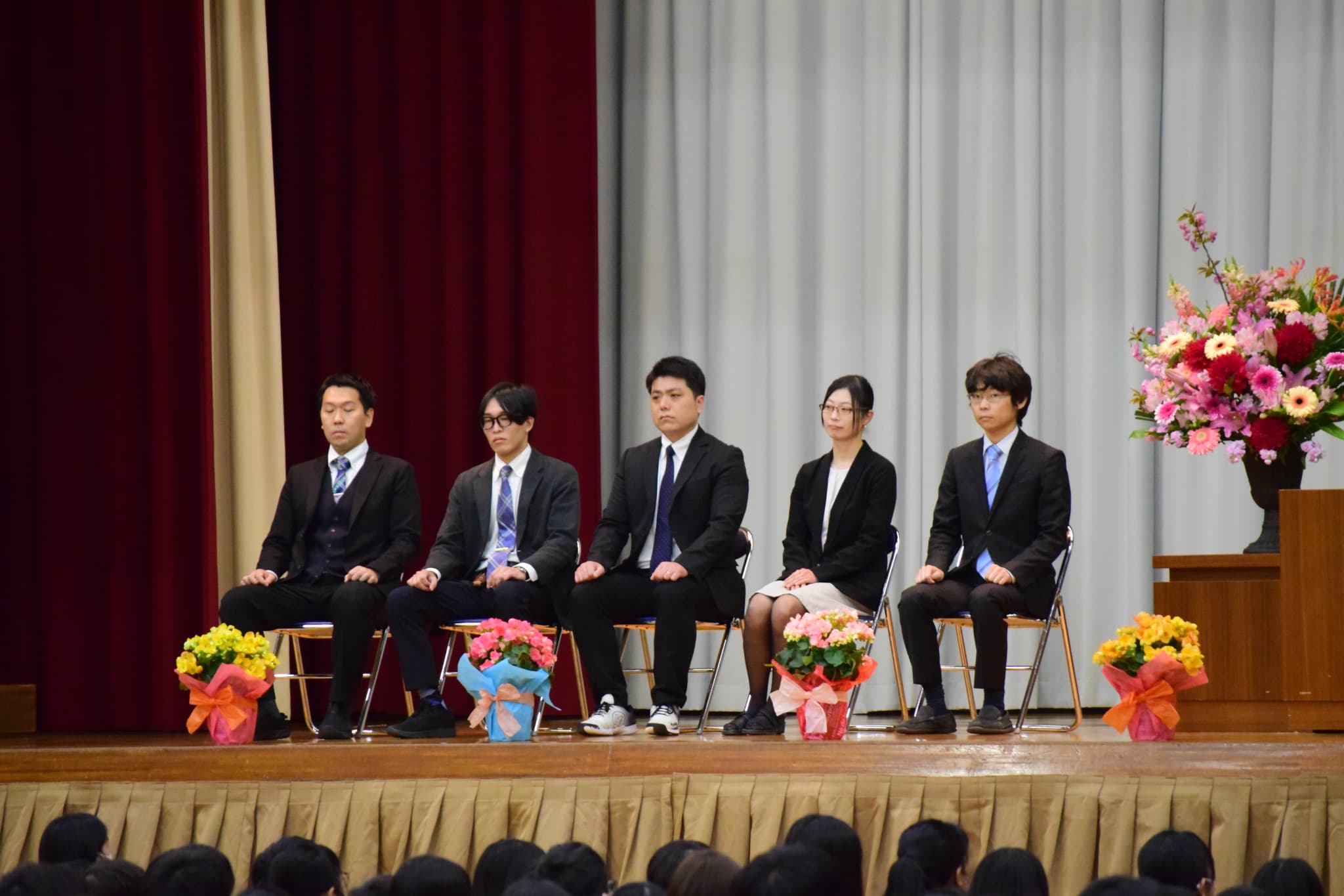 就任式では、本年度新たに着任された先生方の紹介が行われました。先生方からのご挨拶に、生徒たちは真剣な表情で耳を傾けながらも、新しい出会いに胸を弾ませている様子が見られました。これからの日々をともに過ごす仲間として、互いに支え合いながら歩んでいきます。