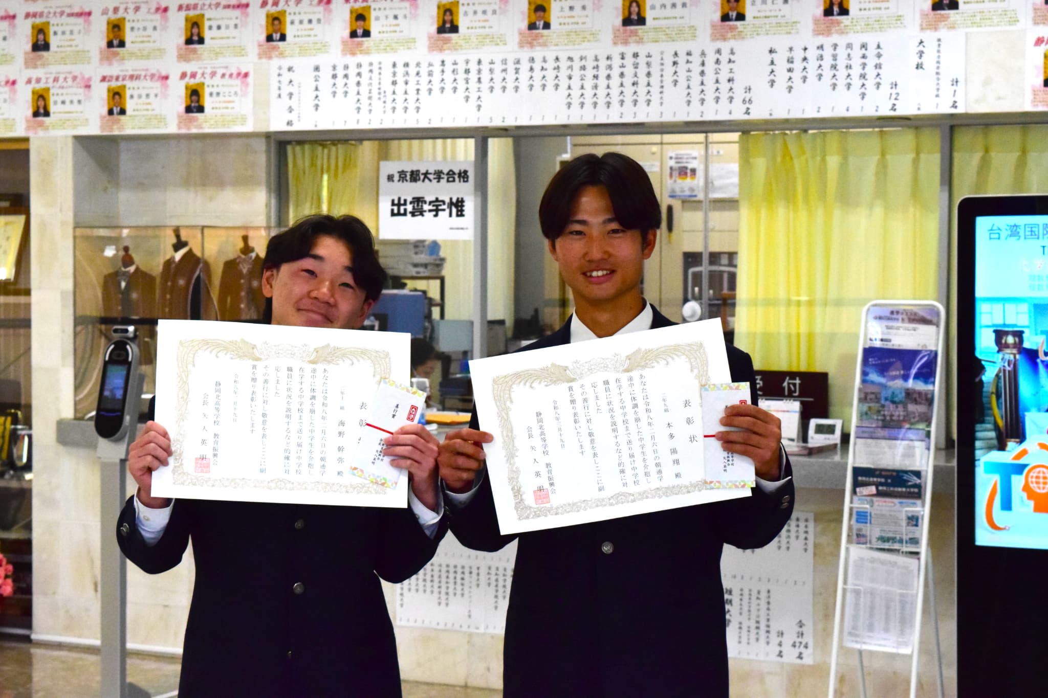 2026年4月9日(木)、桜が満開となり春の訪れを感じる穏やかな気候のもと、静岡北高校に新年度がスタートしました。新しい学年へと進級した生徒たちは、玄関前に掲示されたクラス発表を確認しながら、新たな学校生活への期待を胸に式に臨みました。