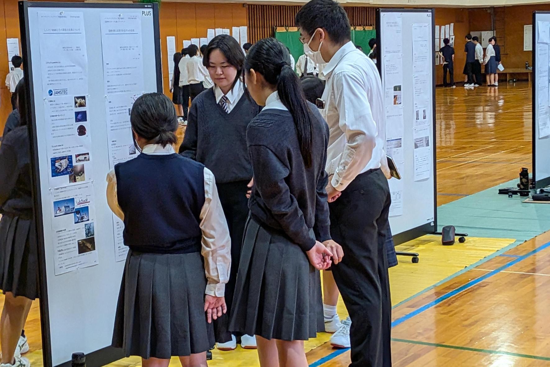 どの発表も、体験を通して得た「気づき」や「驚き」が込められており、理科や数学が社会の中でどのように活用されているかを自らの言葉で熱心に伝えていました。発表会を終えた生徒たちは、「もっと深く調べたい」「次の探究活動に生かしたい」と口々に語り、科学への関心をさらに高めていました。